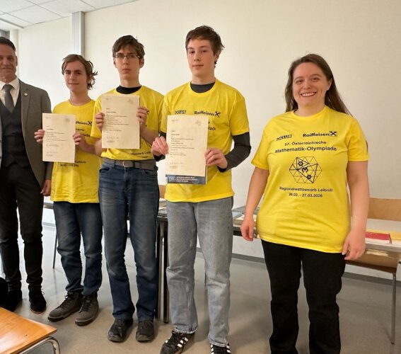 Wir gratulieren Valentin Glatz, 8b, der zum vierten Mal in Serie den Regionalwettbewerb der Mathematik-Olympiade in Leibnitz gewonnen hat.